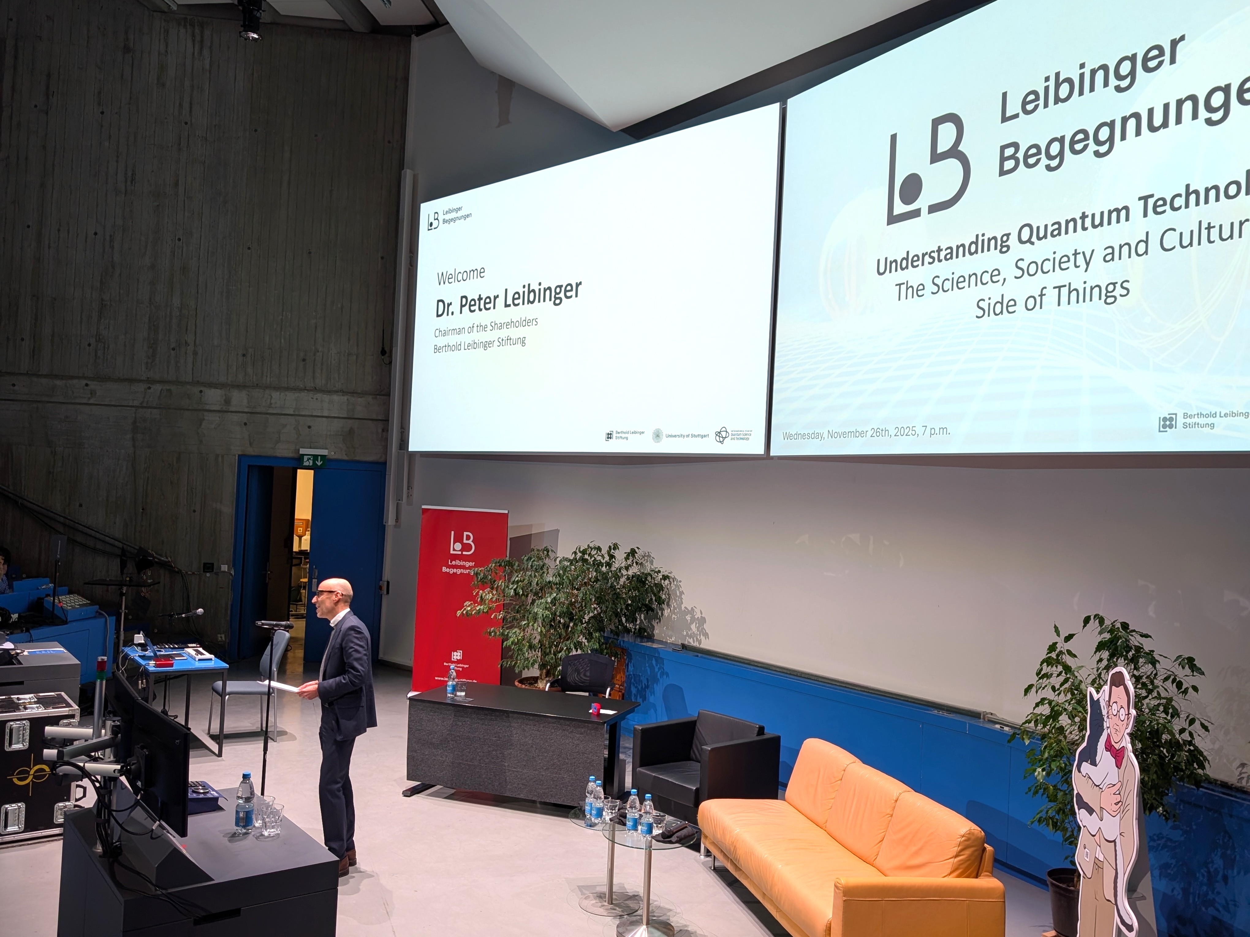 Am 26. November 2025 lud die Berthold Leibinger Stiftung gemeinsam mit der Universität Stuttgart zur „Leibinger Begegnung“ ein. Anlass war der 95. Geburtstag unseres Stifters Berthold Leibinger und das Internationale Jahr der Quantenwissenschaft und -technologien. Rund 180 Gäste erlebten einen Abend, der die Bedeutung der Quantenwelt für Forschung, Industrie und Gesellschaft eindrucksvoll sichtbarmachte.